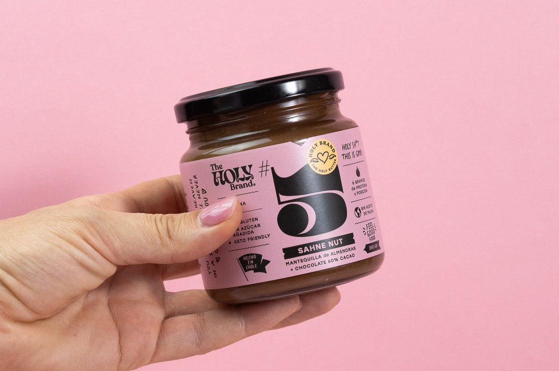 Inspirada en el clásico chocolate Sahne Nuss, Sahne Nut es su versión Holy: más natural, menos dulce y con una cremosidad irresistible que transforma cualquier snack o desayuno en un momento especial.